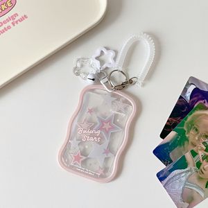 ins グラデーションカラースターカードホルダー学生スライドバスカード保護カバースターチェイス小型カードディスプレイペンダントカードホルダー