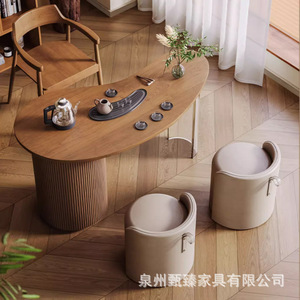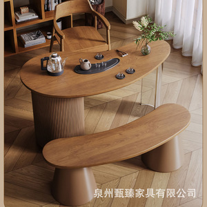 1.4米茶桌+广岛椅+1.4米弧形长凳