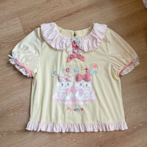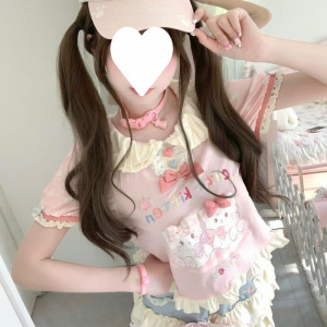2025年夏新作娘服、小柄で柔らかい女の子、かわいい和菓子、柔らかい女の子のレースTシャツ、甘い