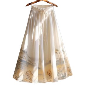 新しい中国風のプリントスタイルの女性のための小さなデザインのAラインスカート2025夏の新しいスリムスカート女性用