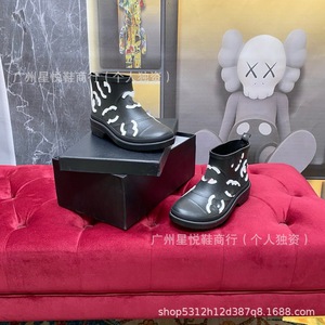 ショートブーツ 3D 立体プリントレインブーツ 2025 初春プラットフォームシューズ中世スタイルショートチューブウォーターシューズレインプリントシューズ