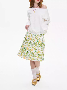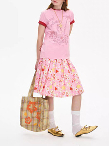 ローカルタグ Sweet Message フラワープリーツスカート ヘビーコントラストダブルウエストデザイン