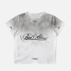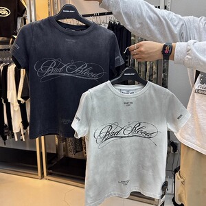 韓国のブラッドブラッドbcacシリーズのスリムプリント半袖tシャツの女性のアメリカ式の水洗いは古い大衆の上着の潮を作ります。