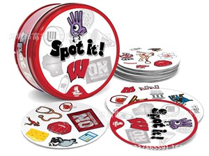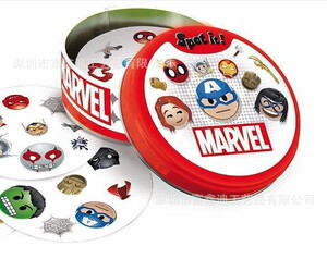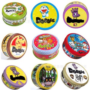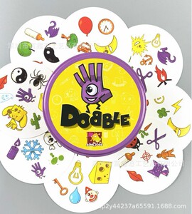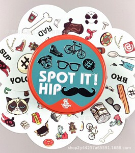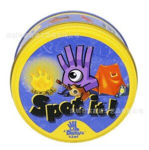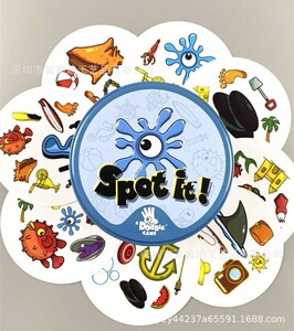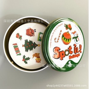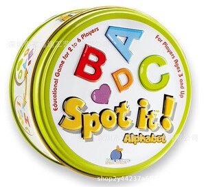 全英語spot it家庭パーティの親子が違うゲームカードを探しています。