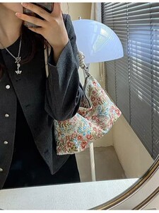 ニッチバッグ女性 2025 新しいスタイルエスニックスタイルシンプルなショルダーバッグキャンバス脇の下バッグチェーンハンドバッグ