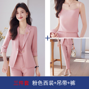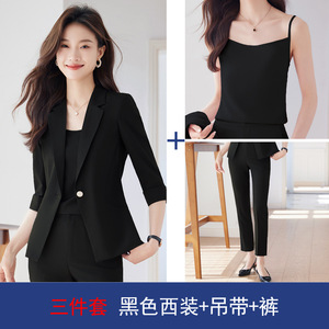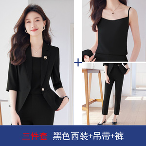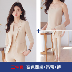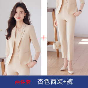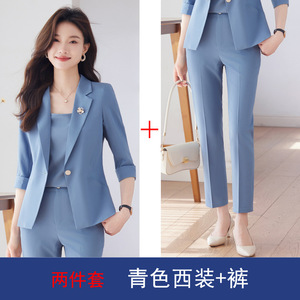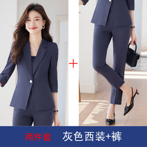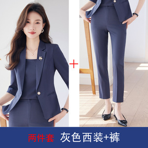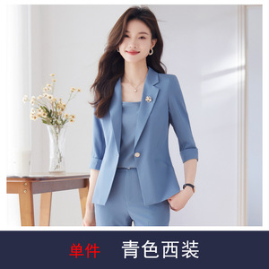 女性用夏の小さなブレザー、薄手で高級感のある七分袖、プロフェッショナルウェア、カジュアルなミッドスリーブスーツ、作業服