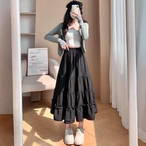 ホワイトフリルスカートレディース2025春夏新作韓国風ハイウエストドレープAラインケーキスカート
