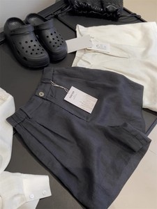 ブルー100リネン!脱ぎたくない〜ゆるくて快適、通気性、伸縮性のあるハイウエスト、女性用の多用途な2色のショートパンツ