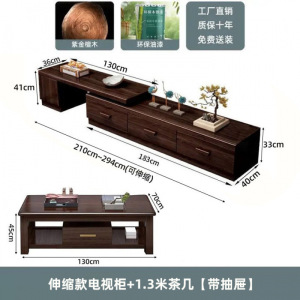 伸縮式テレビキャビネット + 1.3m コーヒーテーブル