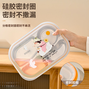 316ステンレス子供用スプリットダイニングプレート高級感赤ちゃん家庭用男の子女の子お食事ケース蓋付き幼稚園