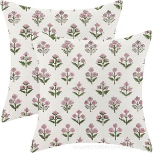 国境を越えた花海星の片面プリント2点セット亜麻の材質枕カバーはベッドソファーの自動車装飾に適している