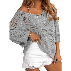 国境を越えたヨーロッパとアメリカの貿易 2025 春夏新作かぎ針編み中空七分袖プルオーバーセーターニットバットシャツ