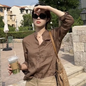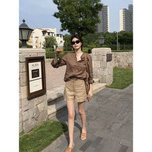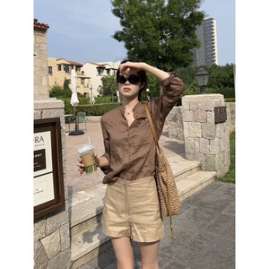 2025 夏ヨーロッパミニマリストスーツレトロリネン日焼け止めシャツ多用途シンプルなカーキショーツ