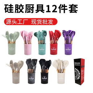 カスタマイズされた木製ハンドルシリコンスパチュラとスプーン 12 点セットノンスティックスパチュラ調理スパチュラとスプーンキッチン用品セット