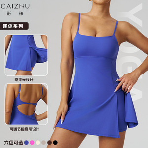 ヨーロッパとアメリカの国境を越えた人気の美しい背中通気性ヨガドレス露出防止底胸パッド付き屋外テニススポーツスカート