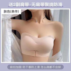 貧乳女性用ストラップレスブラ、プッシュアップ、滑り止め、2着用チューブトップ、シームレス、外側拡張、大きく丸く、ウエストを細くするブラジャー