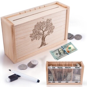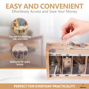 木製貯蓄ボックス現金銀貨コンパートメント貯蓄ボックス子供の貯蓄チャレンジボックス取り外し可能なパーティション貯金箱