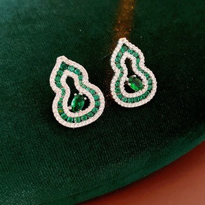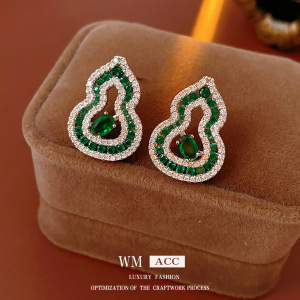 エメラルドジルコン中空ひょうたんイヤリング、軽くて豪華な宮殿スタイルの絶妙なイヤリング、女性用の多用途でハイエンドのナショナルトレンドイヤリング