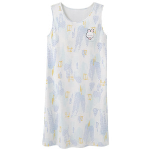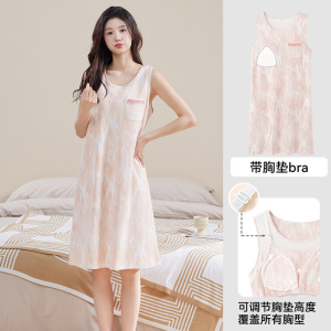 胸パッド付き調節可能なノースリーブベスト純綿ナイトガウン女性の夏の薄いルーズカジュアルパジャマドレス