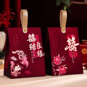 ウェディングキャンディボックス、高級中国風赤いウェディングキャンディバッグ、ウェディングキャンディボックス、空箱、ポータブルギフトウェディングキャンディボックス