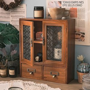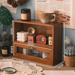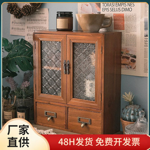 zakka梳妆台办公桌桌面收纳复古收纳柜置物架桌上香水整理盒木质