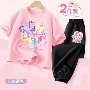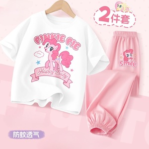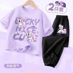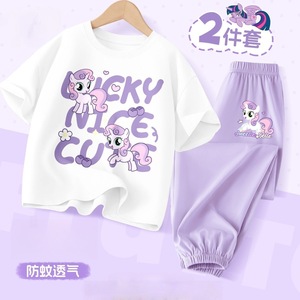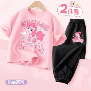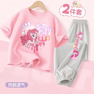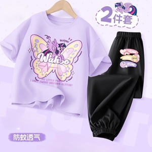 女の子の夏の半袖ズボンスーツ 2025 新しい中型および大型子供用純綿トップス薄いスポーツパンツ 2 点セット
