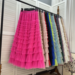 メッシュスプライシングケーキスカート 2025 新しいミドル丈スカート A ラインロングスカートふわふわガーゼスカートメーカー卸売