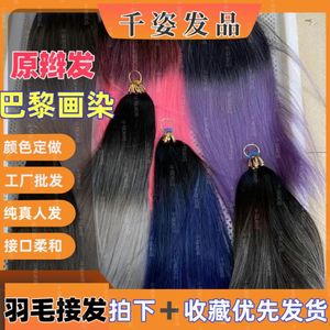 パリ絵画染めミクロンフェザーヘアエクステンション新しいフェザーヘアエクステンション人毛束インターネットセレブホットスタイルグラデーショングレー