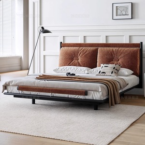 Honston レトロ中世スタイルベルリンベッドフレンチライト高級ハイエンド小型マスターベッドルームシェニール生地ダブルベッド