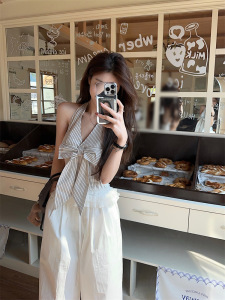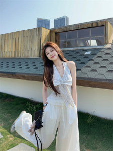 韓国デザインのリボン V ネックホルターネックキャミソール 2025 夏の新スリムアウタートップ女性のための