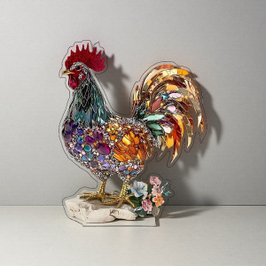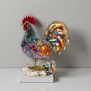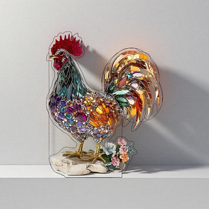 越境新商品 カラフルな招福2D鶏 アクリル製カスタム置物 リビング置物 オフィス寝室装飾