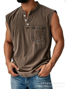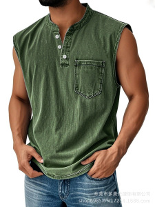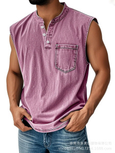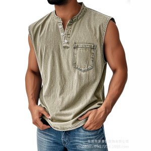 2025新型国境を越えたアマゾン独立駅男性カジュアル百合袖なしボタン襟シャツpoloシャツ男