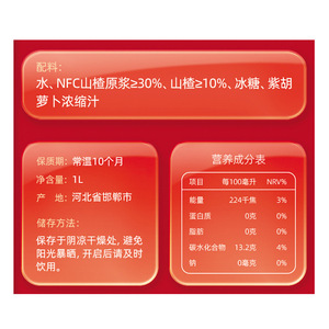 Jinye 生サンザシジュース NFC ドリンク大樽パーティーの最初の選択サンザシドリンク 1L*2 ボトル