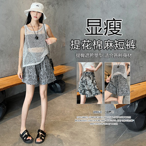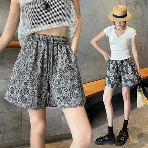 女性用レトロカシューナッツジャカードショーツの実物写真2025夏の新しいワイドレッグパンツカジュアルハイウエストルーズで多用途なホットパンツ