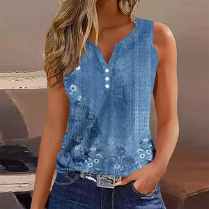2025 ヨーロッパとアメリカの女性のクロスボーダー外国貿易 TEMU 夏の女性のレトロな花シンプルなファッションカジュアルノースリーブトップベスト