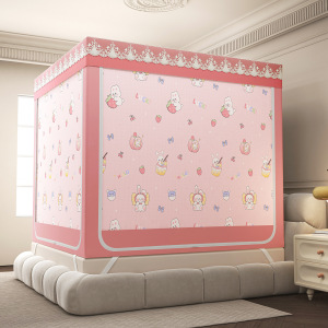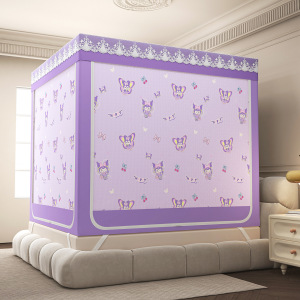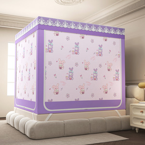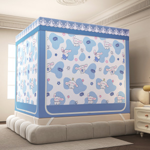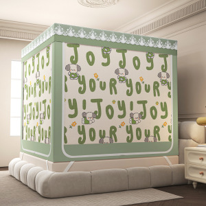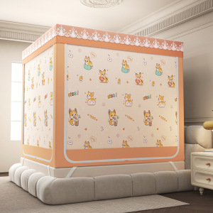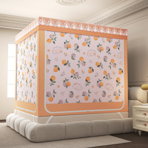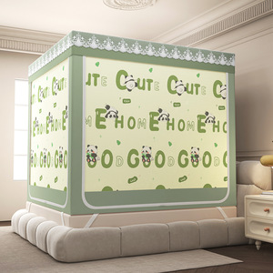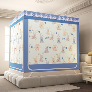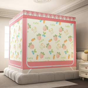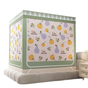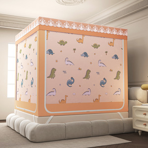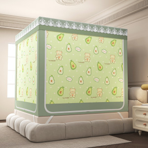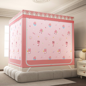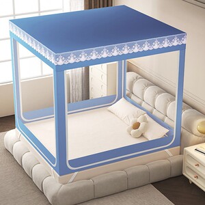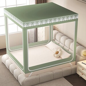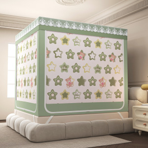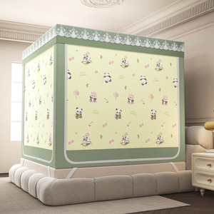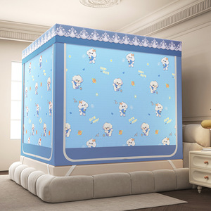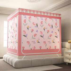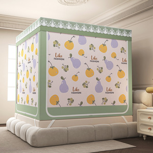 2025年新作プリントレース遮光カーテン付きベッド型蚊帳、家庭用寝室プライバシー保護、1.5m/1.8mベッド用