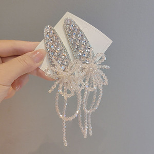2個セット【ピンククリスタルタッセルヘアクリップ 長方形クリップ】