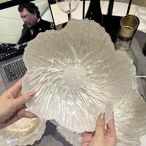 ヨーロッパ式の花水晶ガラスの果物皿の大きいサイズの家庭用の簡単なお茶の皿の間食のトレーの玉の光の白い簡単な仕事淮