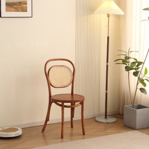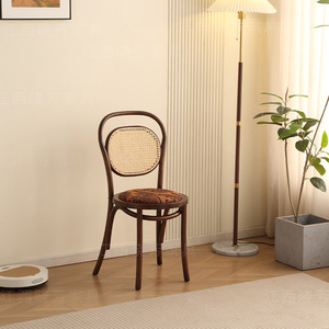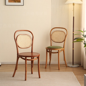 無垢材のダイニングチェアレストラン籐織物レトロチェアシンプルなダイニングテーブルチェア和風背もたれホームレジャーチェア