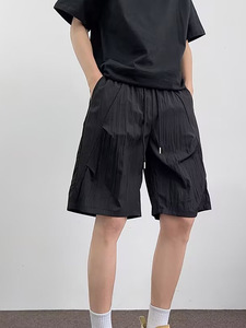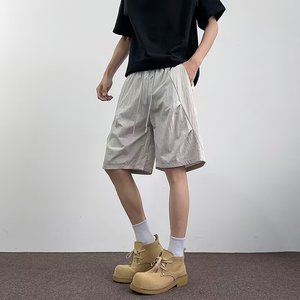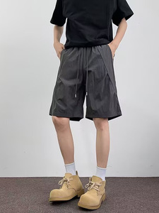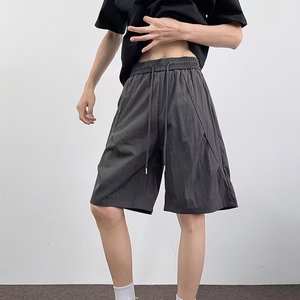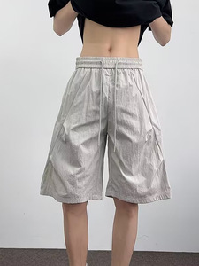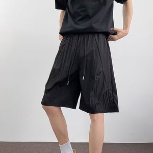 夏用の軽くて通気性のあるアイスシルクの速乾性ショーツ、アメリカンプリーツのデコンストラクトカジュアルルーズデザインのトレンディな5点パンツ