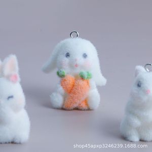 樹脂植毛小さなペンダント立体漫画かわいいニンジンウサギ DIY ジュエリーキーホルダー携帯電話ストラップペンダント