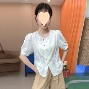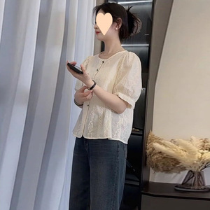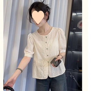 新しい中国風の刺繍薄い半袖シャツ女性のための 2025 夏の新しいスタイル小柄な気質スリムファッションショートシャツ