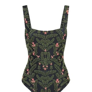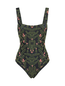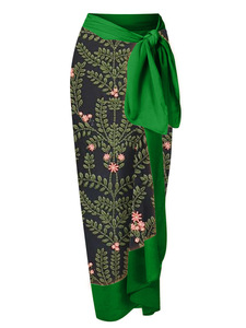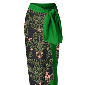 レトロなダークグリーンの花柄ワンピース水着、ラップスカート付き、ビーチでの休暇の花柄水着、女性用露出防止スカート