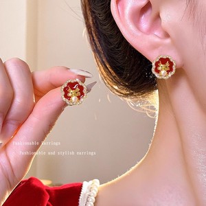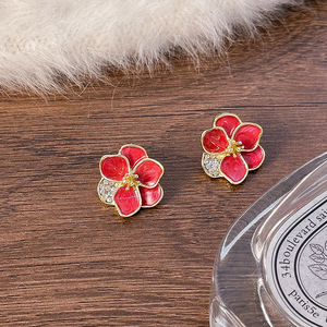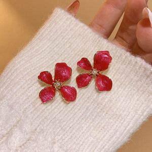 红色滴油四瓣花耳钉-