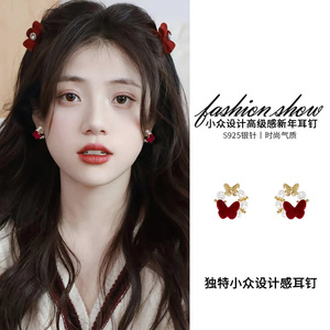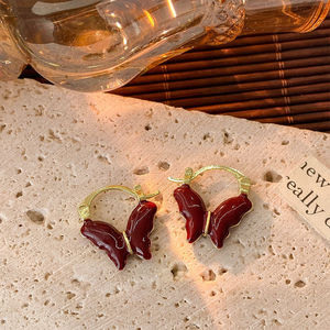 酒红色蝴蝶耳扣