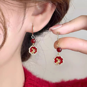 红玛瑙生肖龙耳夹