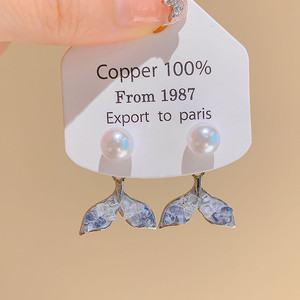 蓝色植物耳夹