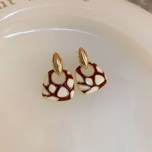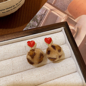 红色梯形豹纹耳钉-