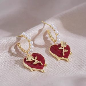 爱心玫瑰珍珠耳钉