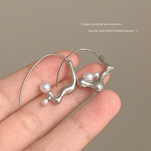 银色几何弯曲珍珠耳坠